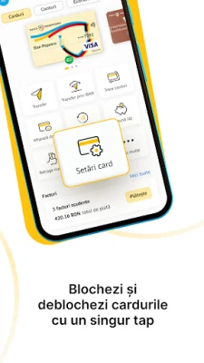 • Poti transfera bani intre conturile cardurilor tale BT;