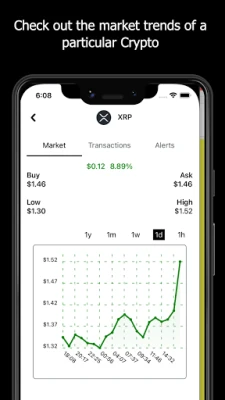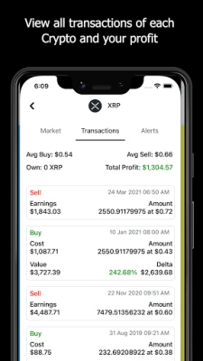Market trends, and the market change over a year, a month, a week and a day can be viewed. Wallet balance, your past transactions. Overall profit for each coin.