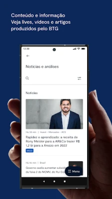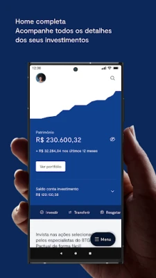 No app do BTG Investimentos, você encontra as melhores soluções para potencializar seu dinheiro e alcançar seus objetivos financeiros.