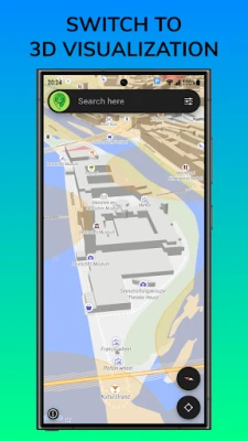 Sometimes it's helpful to be able to better understand the buildings around you. To do this, you can switch the map from a bird's eye view to 3D.