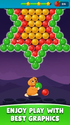 Match 3 balls to blast and clear the level and make amazing high score. Tap and hold finger on the screen to drag the projectile displaying target and drop to shot ball. you can user your mind and aim carefully and hit the different fruit bubbles pop at every levels and clear levels and unlock next level.