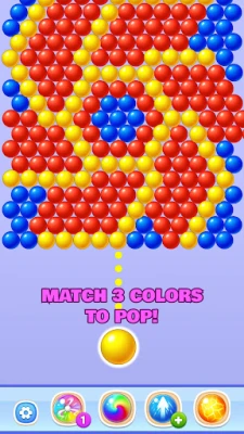 - Match 3 or more same bubbles.
