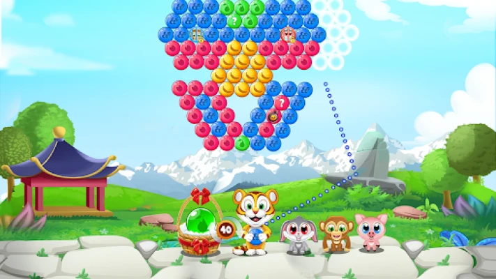 In this game, your objective is to clear the level by popping all the bubbbles. Match three or more bubbles of the same color to make them burst and earn points. But be careful - if you let the bubbles reach the bottom of the screen, it's game over!