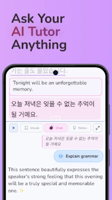 • Chat with Poppy, your AI Korean tutor: ask for deeper explanations or extra practice prompts tied to content. Or ask anything about Korean!