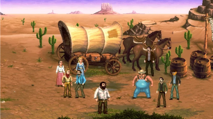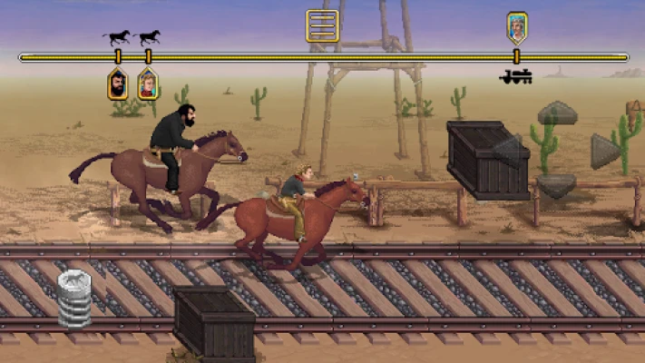 Bud Spencer and Terence Hill in their first virtual adventure. A brand new story! Whether in the Western Saloon, Miami Downtown, at the fairground etc... you'll get the full load of funny conversation, slaps and of course lots of mass brawls.