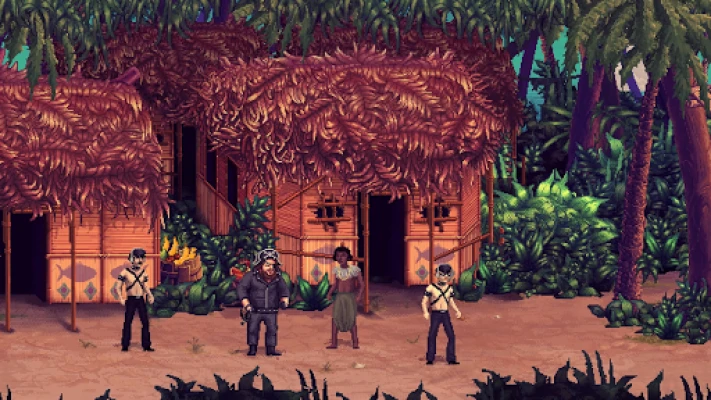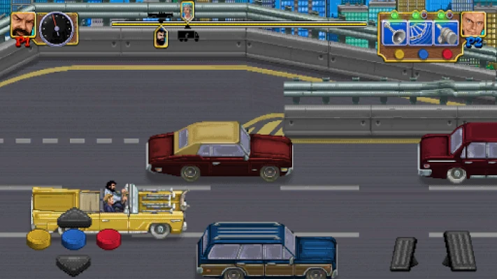 The key ingredients of Slaps and Beans are: - Retro pixel art graphics - Bud Spencer & Terence Hill style fighting system - Mini-games - A red Dune Buggy with a yellow tarp - A lot of slaps and a lot of beans (obviously)