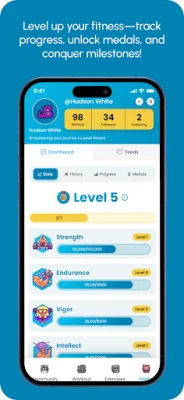 - Gamified Progress: Earn Experience Points (XP) and Medals by hitting new achievements in key categories like Strength, Endurance, and Stamina. Make tracking fun and rewarding!