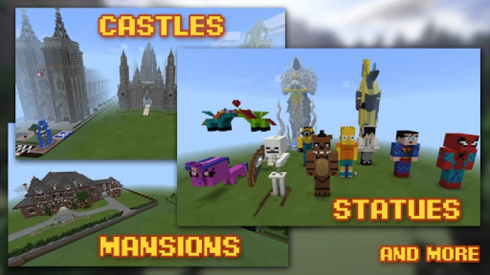 Building Mods for Minecraft has many categories: modern houses, mansions, creations, ships, castles, pixel-arts, statues. This app will build objects automatically, so you don't need to spend many hours using instructions. Object will be on the exactly that place that you want - adjust position using 3D viewer. Out of building ideas? Add your minecraft house and transfer it between worlds. Create a minecraft map of your dream with the best building addons & free minecraft mods for house!