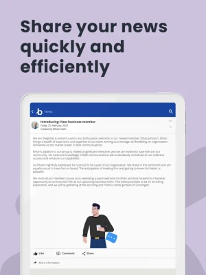 It is our goal to turn an organisation into a community where people interact, find, connect and share. A community that you can inform at the touch of a button.