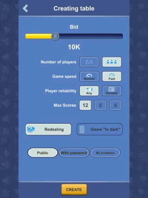 - Setting up access to a table: public / private / password - to play only with your friends.