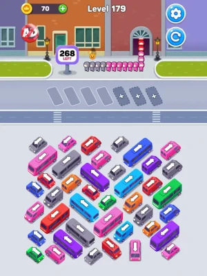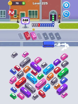 Bus Out Jam is a puzzle game that solves parking and traffic jams to show off your logic.Your task is simple: move the buses and cars based on color to help passengers get on their correct vehicle. However, parking space is limited and passengers often stand haphazardly. Bus Out Jam will be a difficult problem that requires sharp thinking and the ability to react quickly