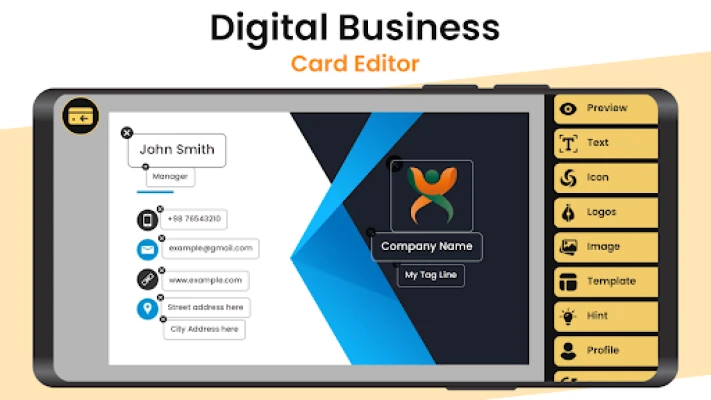 🔹 DIY digital cards, customize & edit business card templates with a digital visiting card maker app.