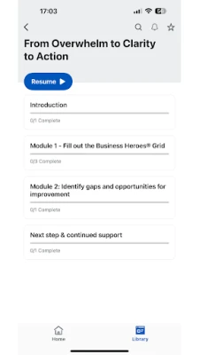 Inside the Business Heroes app, you can: