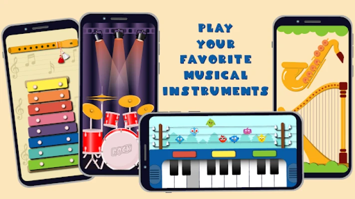 ✔ Musical instruments: piano, xylophone, drums, harp, saxophone, flute - all the sounds of real and high-quality instruments, reveal the musical potential of your baby.