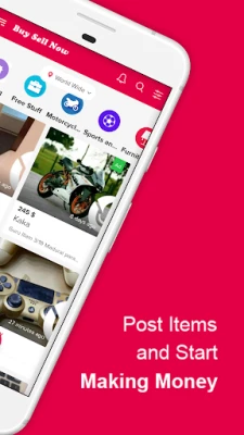 "Buy Sell Now" Best shopping app to letgo and buy and sell stuff locally. You can add homes for sale, cars for sale, property, electronics, used iphone, motorcycles, used fashion, buy pets, buy jewelry, used furniture for sale used games etc. a lot of used up items for sale by owner and buy electronic for cheap prices.