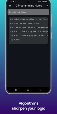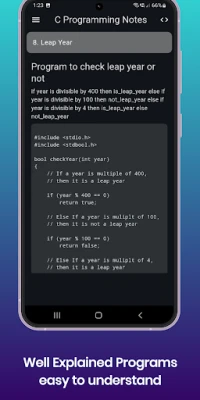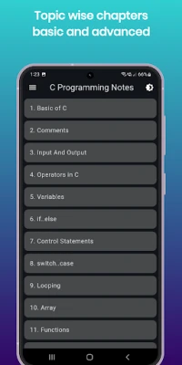 “C Programming Notes” app has a really simple and interactive UI. It is the best app to let you learn the C programming language for free. So, what are you waiting for? Download the app now to become an expert at C Programming Language.