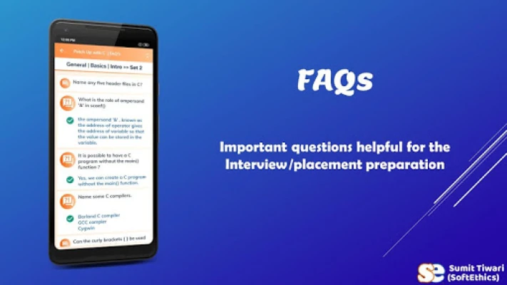 It focuses on the core concepts and basics of the C programming that are vital for the programmers. The learners will find this app helpful in the preparation of the programming/placement exams, and they can apply the learning's in their day to day job.