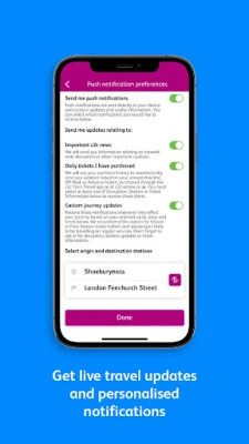 Travel with real-time information such as train times, platform information and car parking availability. Sign up to push notifications to hear personalised journey updates based on your itinerary, important updates affecting travel across the c2c network, and information about expiring tickets you may have bought. You can also see ticket office opening times and station facilities to help you plan your journey.