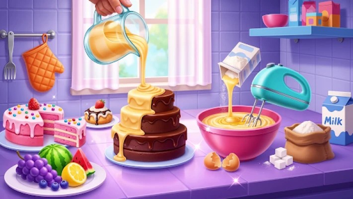 Welcome to Cake Maker Fun Cooking Games, the most satisfying cake baking and decorating game! Step into your dream bakery, mix ingredients, bake delicious cakes, and decorate desserts just the way you like. Enjoy fun cake cooking games with realistic effects, smooth controls, and relaxing ASMR-style moments.