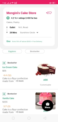 A customer can choose to have the cake delivered or for pick-up/take-away. The process consists of a customer choosing the cake shop of their choice, scanning the menu items, choosing an item, and finally choosing for pick-up or delivery.