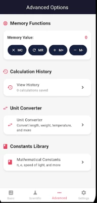 3. VERSATILE: Memory functions, history, unit converter, and constants library