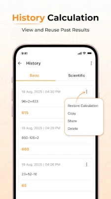 All your previous calculations are automatically saved. You can review, copy, share, delete or reuse them anytime you want.