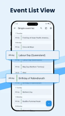 Create recurring events, track upcoming birthdays, meetings, and holidays. Use the agenda view to see all your events in one clean list.