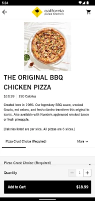 With the California Pizza Kitchen App: