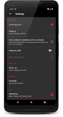 As opposed to the standard black list is all data about blocked calls is stored in a separate program, which has its own log and settings.
