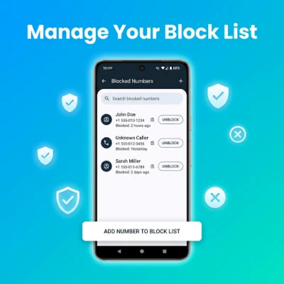 Add any number to your block list and manage blocked contacts anytime with a simple interface.