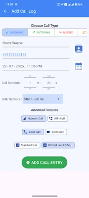 Add Fake Call Logs: Create custom call entries with details like name, number, date, time, and duration. Simulate incoming, outgoing, or missed calls for fun.