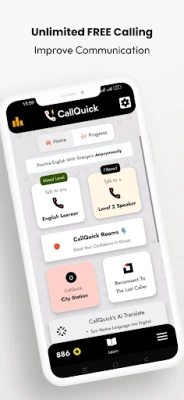 CallQuick - Your Ultimate FREE Random Calling App. Explore the world of fluent English. ๐ Connect with strangers globally through live audio chats n and turn every conversation into a dynamic language practice session. Whether you're looking for an English talk app, a stranger call chat app, or simply seeking a random calling experience to boost your language skills, Call Quick is your go-to solution.