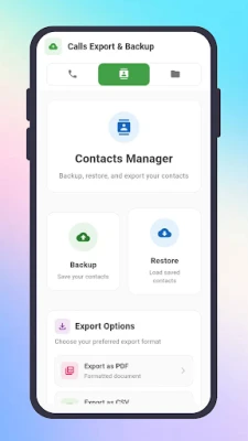 Effortlessly manage, export, backup, and restore your call history and contacts in just a few taps.