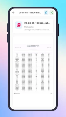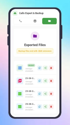 Each backup or export file can be easily copied, previewed, or shared with just a tap. Keep your call history and contacts organized and accessible.