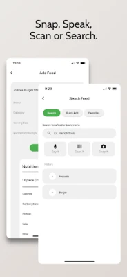 Speak to Track: Log meals on the go with voice-powered tracking. Simply say what you’ve eaten and let the app do the rest—hands-free nutrition tracking.