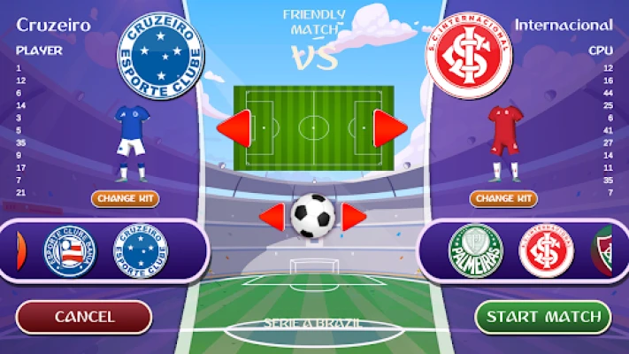 Você pode escolher qualquer um dos vinte times participantes do Campeonato Paulista ou do Campeonato Brasileiro de Futebol, além de alterar os campos e as bolas para aumentar a diversão durante o jogo.
