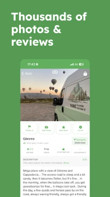 ➜ Use more than 50 filters and find detailed info about the campsites and explore our huge database of spots for a motorhome stopover, added and reviewed by the app community! Discover the outdoors just how you like it.