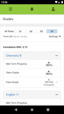 NOTIFICATIONS Receive alerts for grades, assignment scores, attendance changes and more.