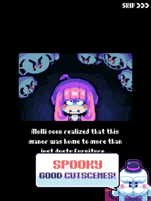 Play as Molli Pop as you fend off hordes of adorable ghosts in a twisted mansion forever haunted by the Phantom King! Power-up Molli with new flashlights and abilities as you level up - and team up with ghostly pups and other spectral creatures as you work together to clear the mansion of its sugar-craved evil!
