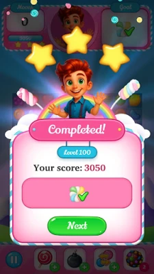 🍬 Sweet Power-Ups: Create amazing combos! Match 4 or more candies to generate powerful boosters that will help you crush the board.