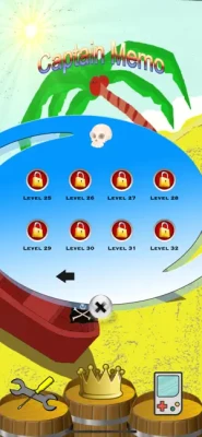 Welcome to "Captain Memo" !This game is for people of all ages.Train your brain and remind cards position.Find similar cards to earn points and make combo when pairs are successively found.You can play against the computer, with someone on the same device or online with game center.Win against "Captain Memo" and increase difficulties. 32 levels to become the greatest pirate of seven seas !!