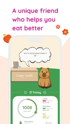 • Fun & Easy Calorie Tracking: Say goodbye to boring calorie tracking! With CapyDiet, keeping an eye on your food and macro intake becomes an enjoyable part of your day. Stay in control with an intuitive interface powered by calorie AI and make informed choices effortlessly.