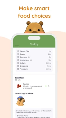 Meet Capy, Your diet best friend! Capy Diet is a calorie counter pet that helps you build a better relationship with food, one meal at a time. Simply log your meals, and coach Capy will give you healthy and personalized food suggestions.