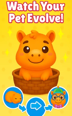 Meet your new best friend — a cute cartoon capybara! In this fun virtual pet game, you can adopt, care for, and evolve your adorable capybara. Feed it delicious meals, try exciting cooking activities, dress it up in cute outfits, and watch it grow!