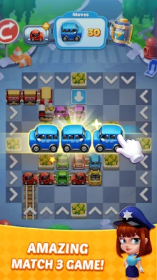 ✔ Clear the parking board by tapping on vehicles to match 3 cars of the same color.