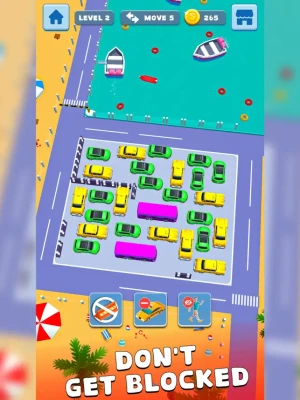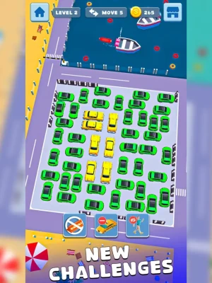 Easy to Play, Hard to Master: Slide and move cars with simple controls.