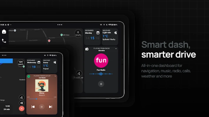 Car Launcher by CarLab turns your phone, tablet, or Android head unit into a clean, driver-friendly dashboard—navigation, music, radio, calls, weather, and your favorite apps in one place.