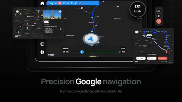 • Points of Interest (POI): find nearby gas stations, restaurants, hotels, and ATMs with one tap