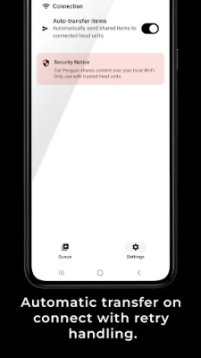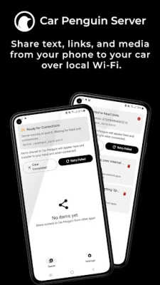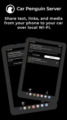 Car Penguin Server lets you share text, links, and media from your Android phone to your car head unit over local Wi‑Fi. Add items from any app using Android’s Share menu, then Car Penguin takes care of delivery—no cables, accounts, or cloud required.