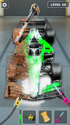 Satisfying Cleaning Gameplay: Wash cars with soap, water spray, and high-pressure tools.
